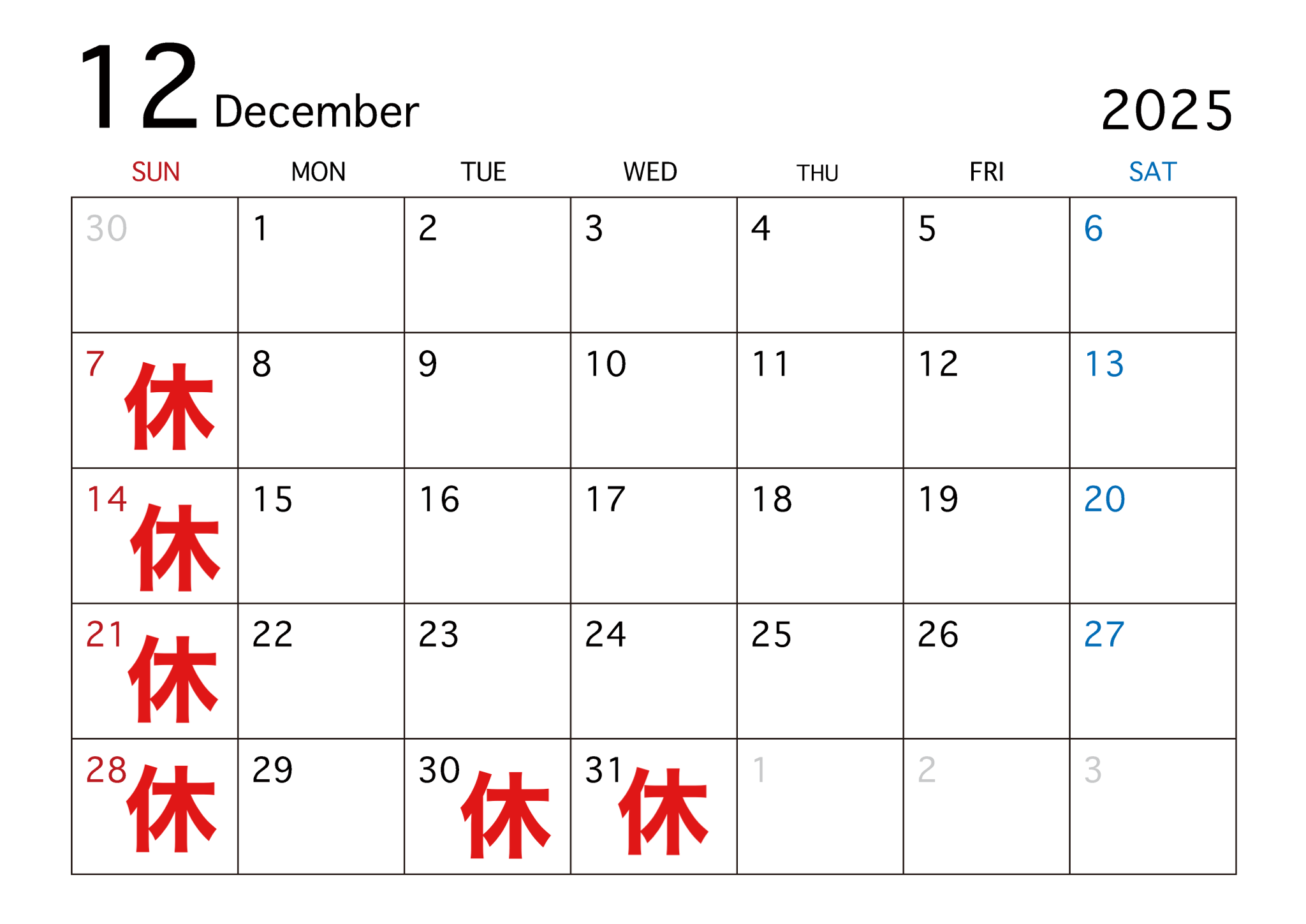 12月の営業日