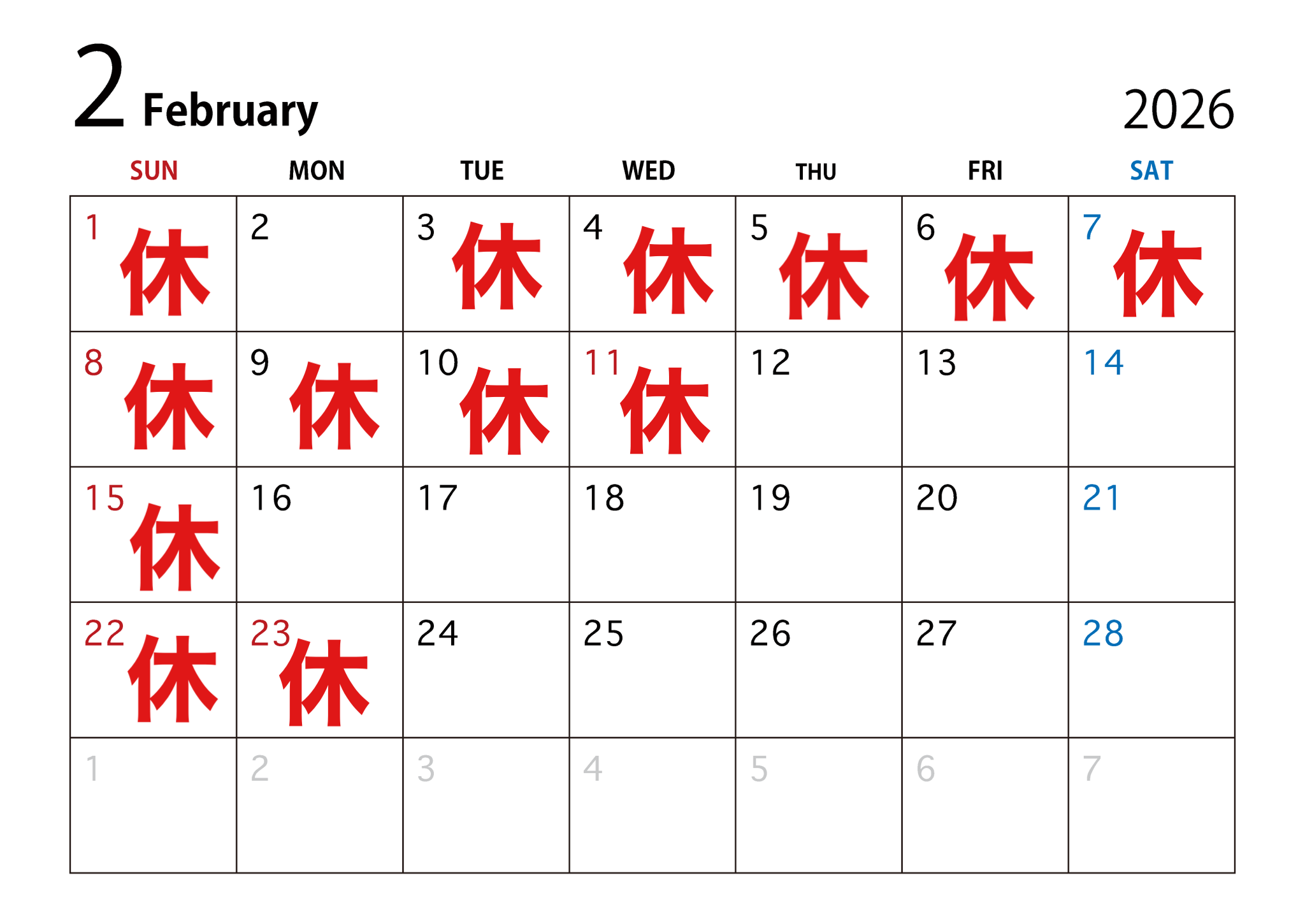 2月の営業日